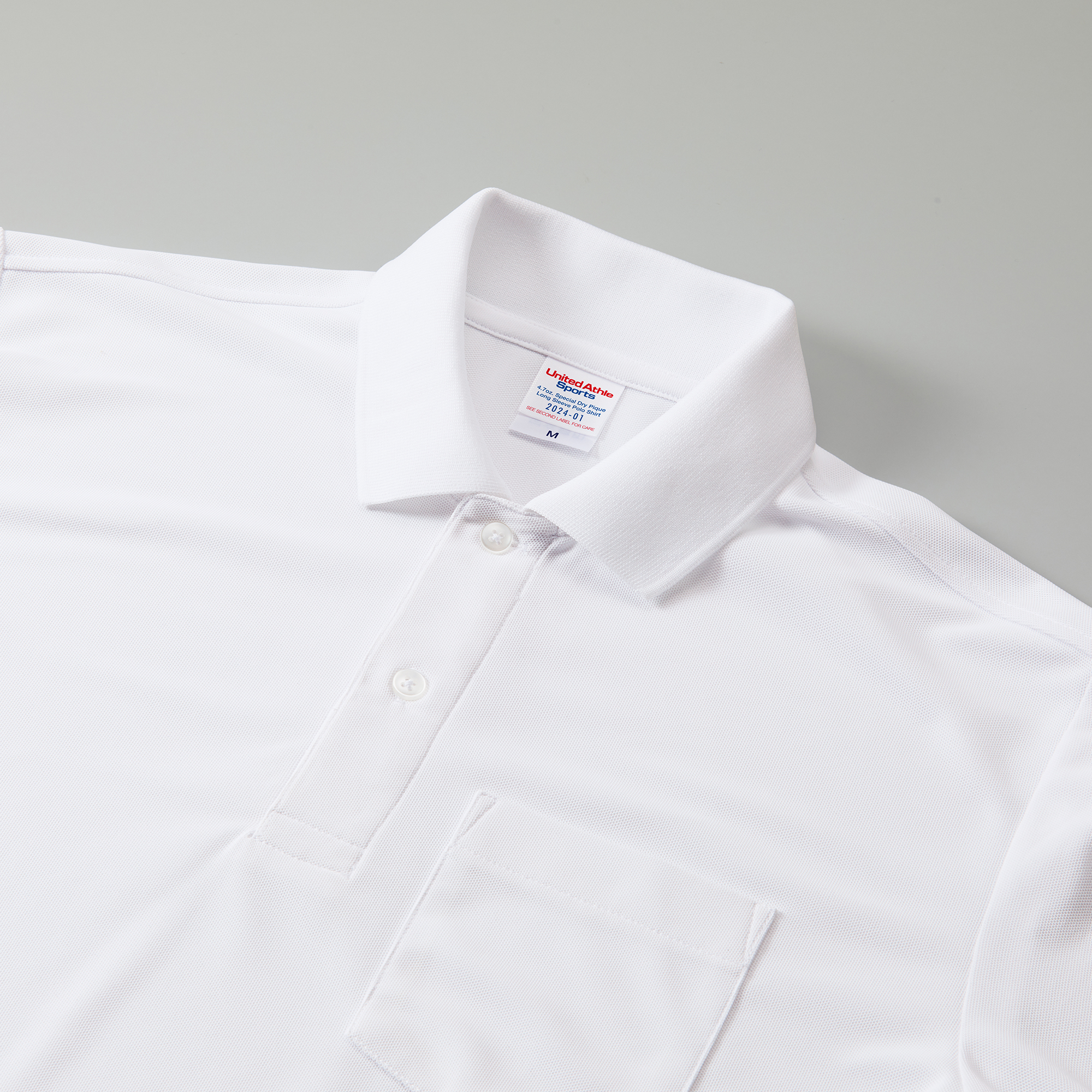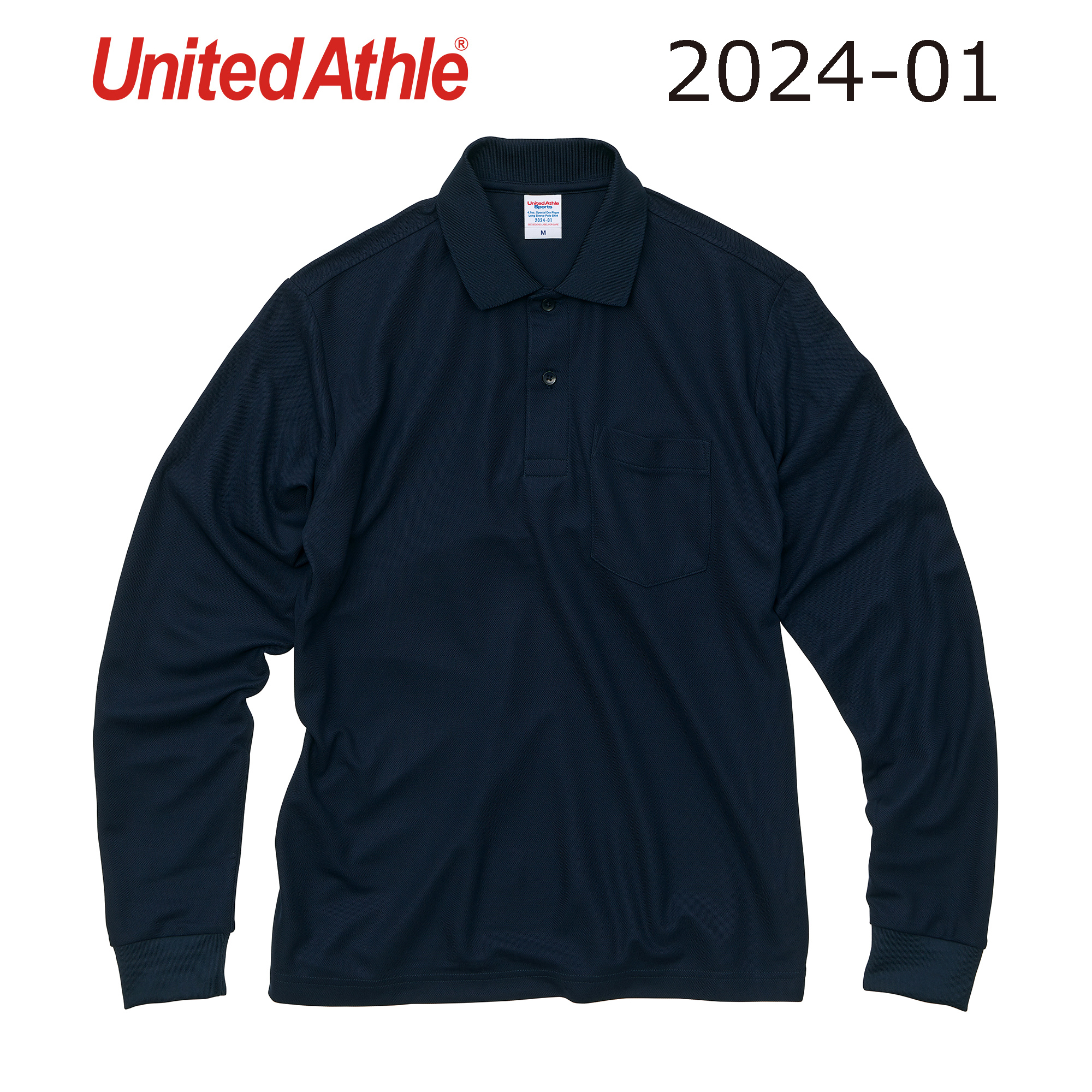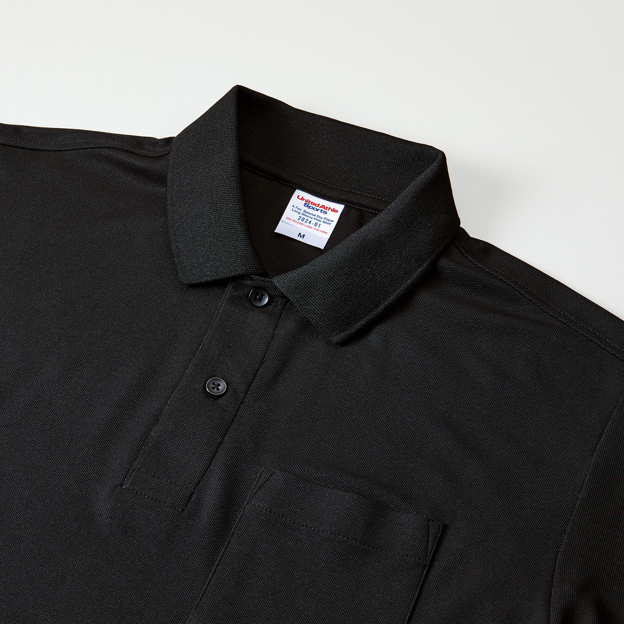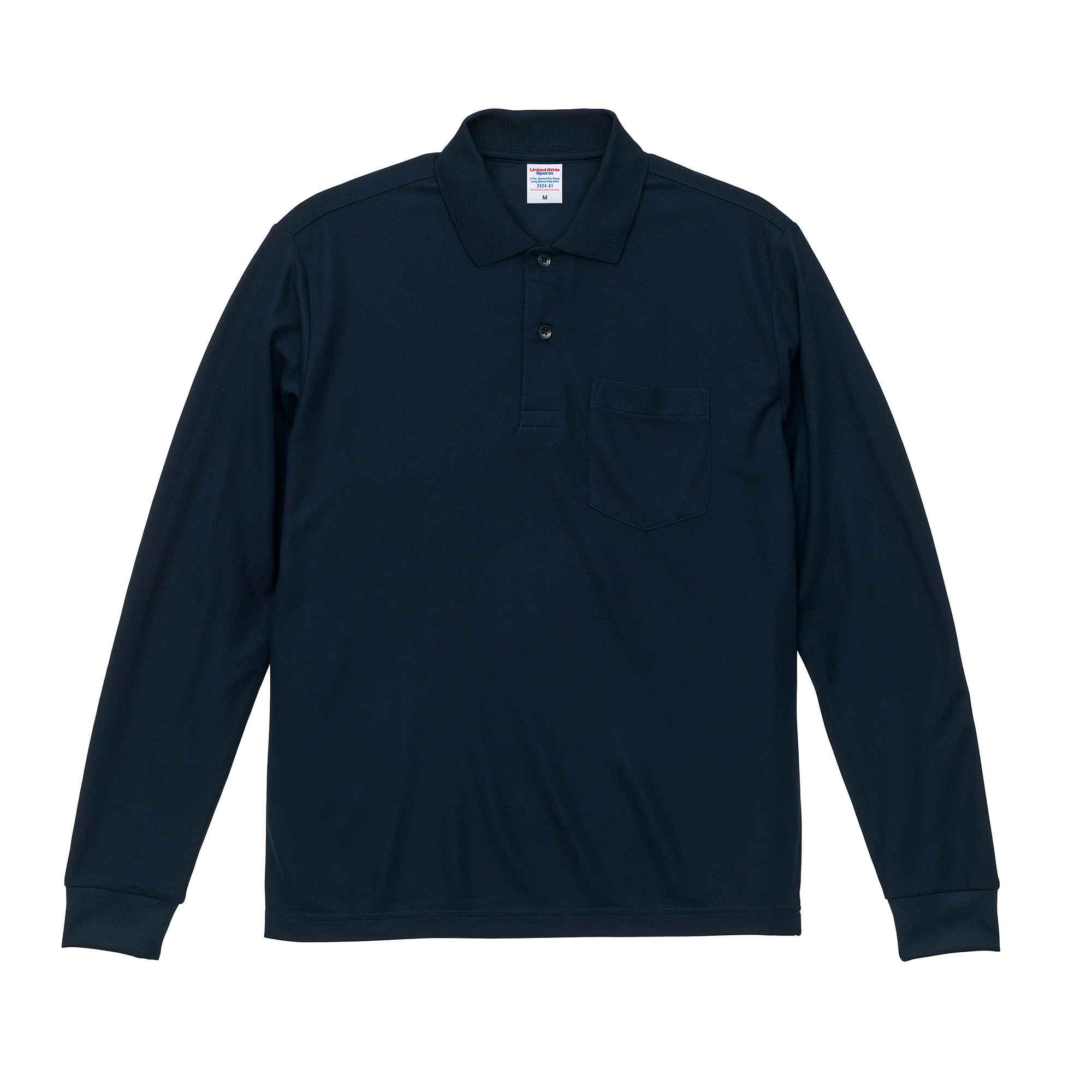 ドライ生地+胸ポケット付+リブ襟+リブ長袖の定番品