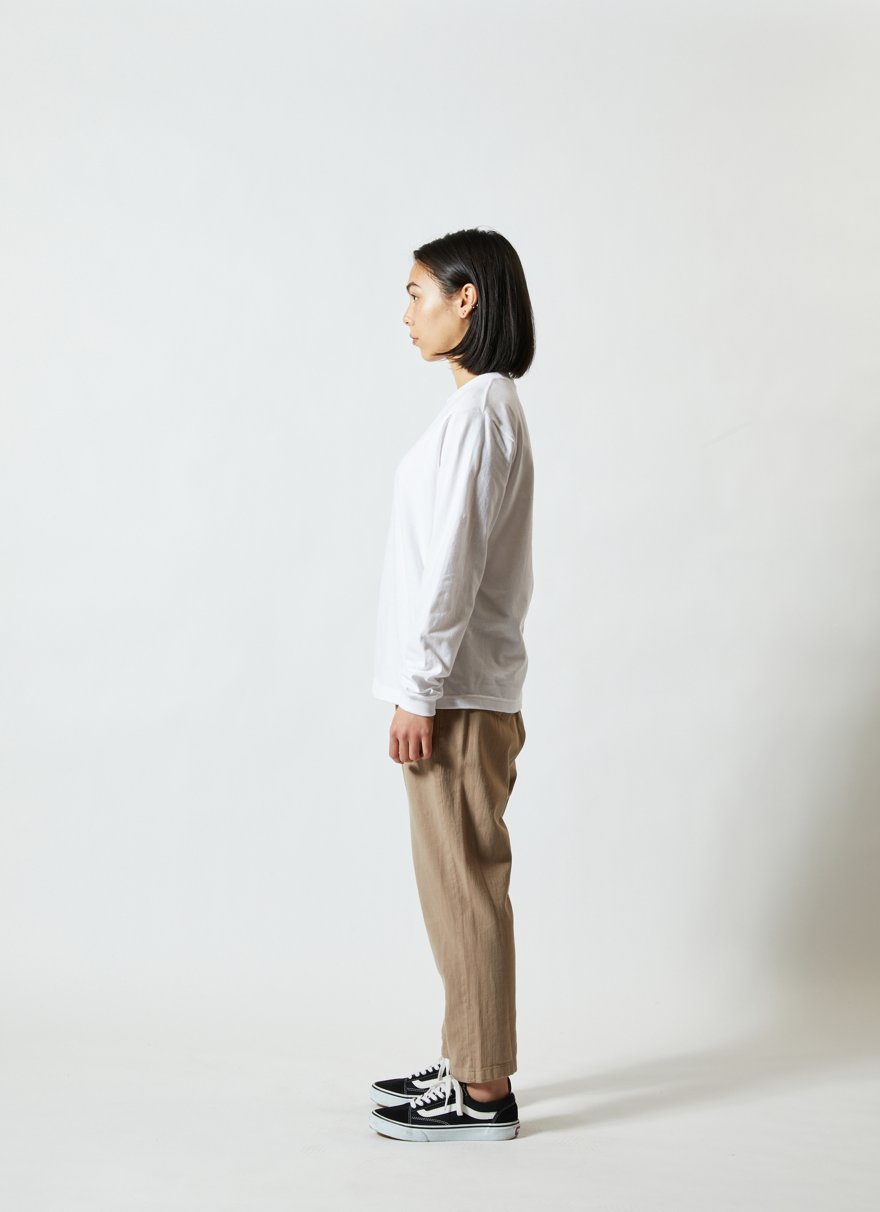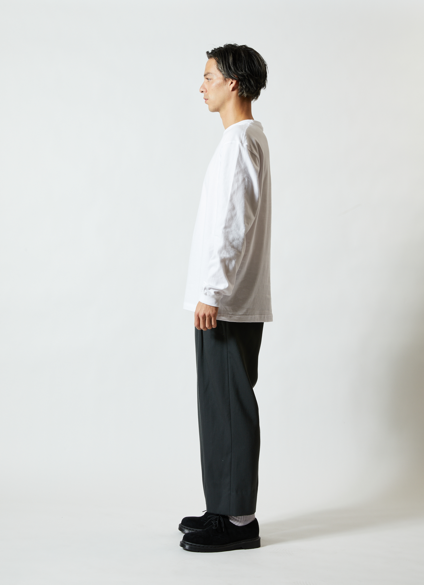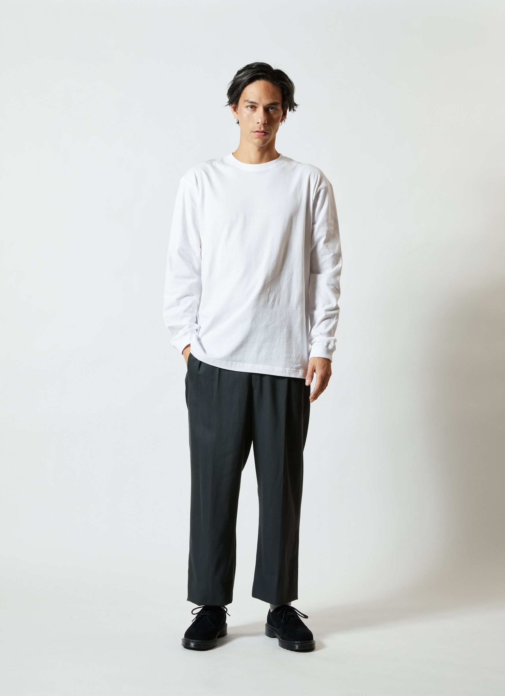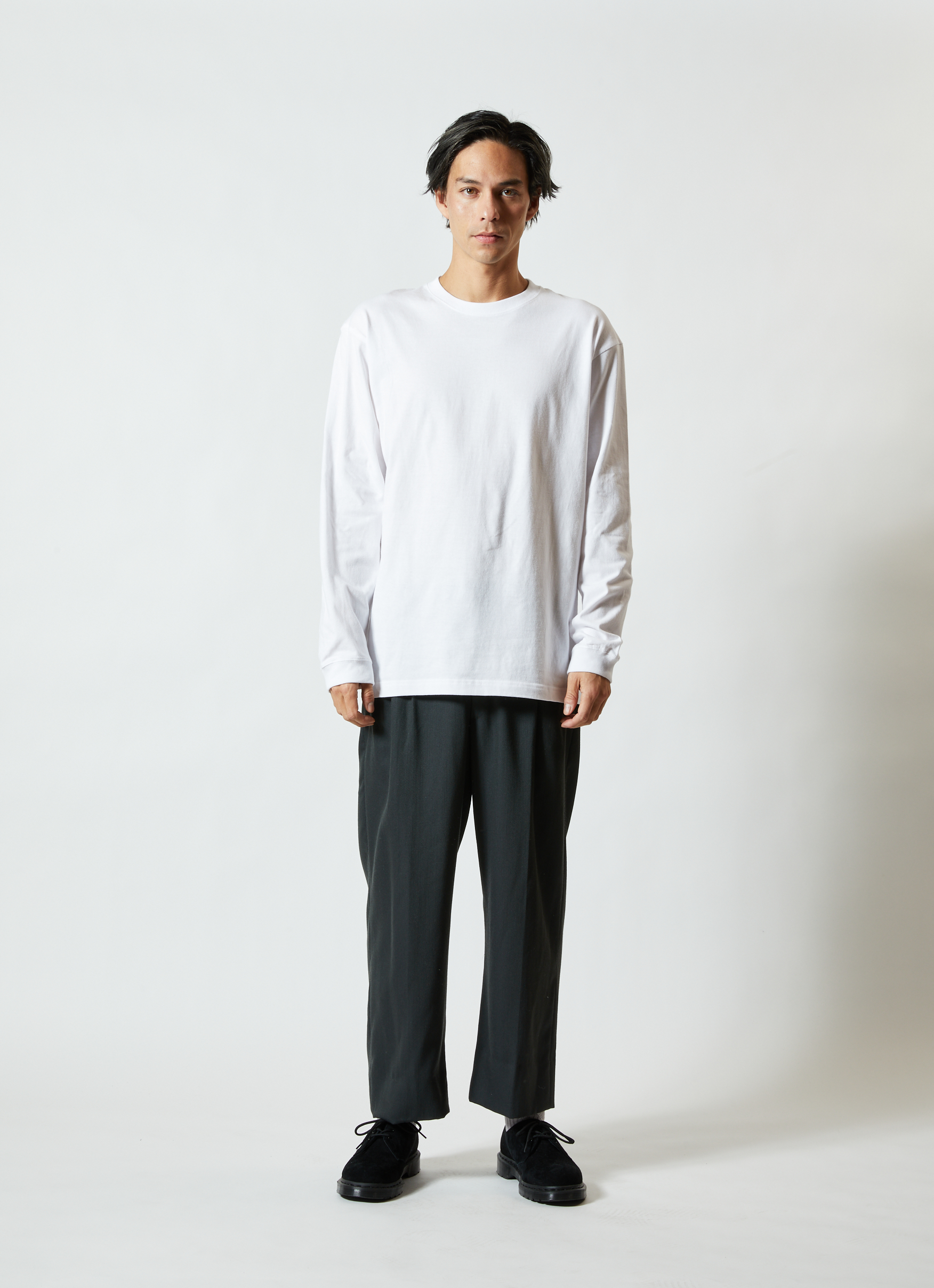 「Style No.5001-01 5.6オンス ハイクオリティ Tシャツ」と同生地を使用した、ロングスリーブタイプ(袖口リブ仕様)。少しオーバーサイズでアウターにするのも良し、レイヤード(重ね着)でインナーにするのも良しの万能アイテム。1.6インチ(約4cm)の袖口リブは、適度な弾力がありコーディネートのアクセントになります。